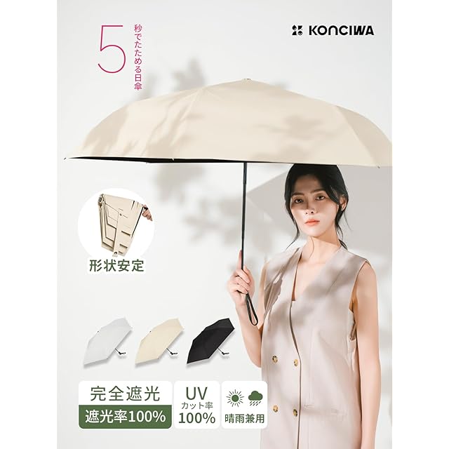 【 森香澄広告掲載モデル 5秒でたためる傘】konciwa 形状記憶 日傘 UVカット率 100% 晴雨兼用 自動開閉 完全遮光 遮熱 折りたたみ傘 軽量 コンパクト設計 おしゃれ 折り畳み傘 便利な日傘 撥水速乾 高耐久 耐強風 携帯便利 母の日 父の日カラーバリエーション豊富