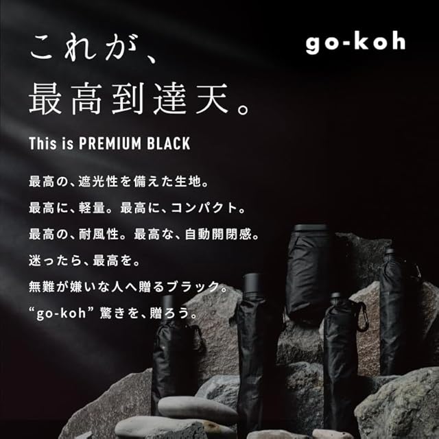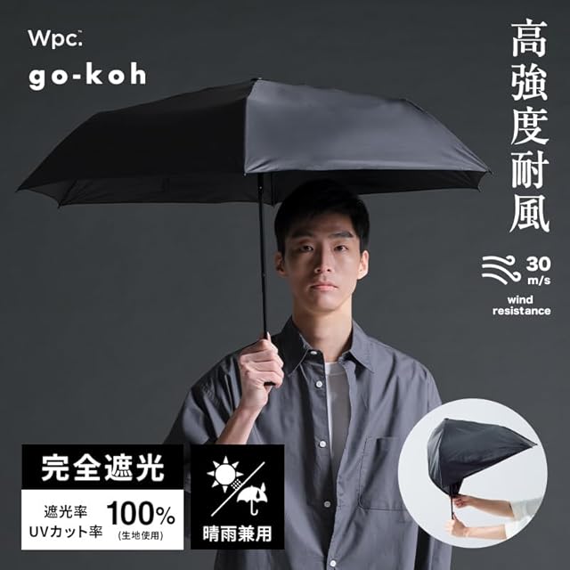 【これが、最高到達天。】Wpc. go-koh 遮光スーパーウィンドレジスタンス ブラック ≪遮光率100%/UVカット率100%/UPF50+/遮熱/晴雨兼用≫ 日傘 雨傘 折りたたみ傘 耐風30m/s 軽量 メンズ 耐風 GO004-900-102