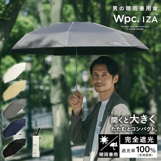 Wpc. IZA 男の晴雨兼用傘【コンパクトなのに開くと大きい】LARGE&COMPACT ベージュ [遮光率100%・UVカット率100%・UPF50+・晴雨兼用]日傘 メンズ イーザ 男性 折りたたみ傘 58cm おしゃれ 無地 ZA010-911-102