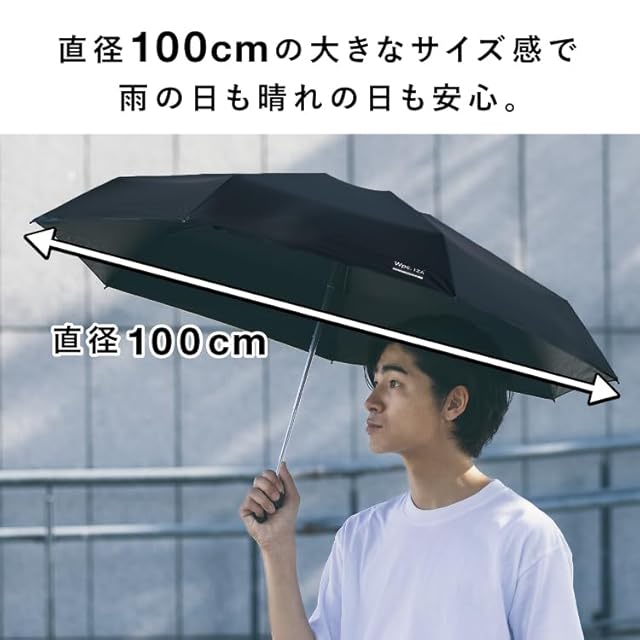 【ZA010:LARGE&COMPACT】 急な雨や暑い日でも安心な、親骨58㎝/直径100cmの大きめサイズです。 開いた時の大きさだけではなく、たたんだ時のコンパクトさも両立。 バッグにも入れやすく、持ち運びに最適なアイテムです。