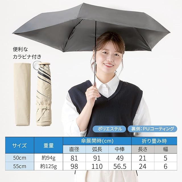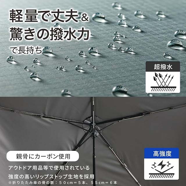 weer 創業100年の品質 折りたたみ傘 日傘 約94g 超軽量 UVカット100% カーボン親骨 折り畳み傘 折りたたみ日傘 大きい コンパクト 丈夫 メンズ レディース 晴雨兼用軽量折りたたみ傘 ウェア 50cm グレー