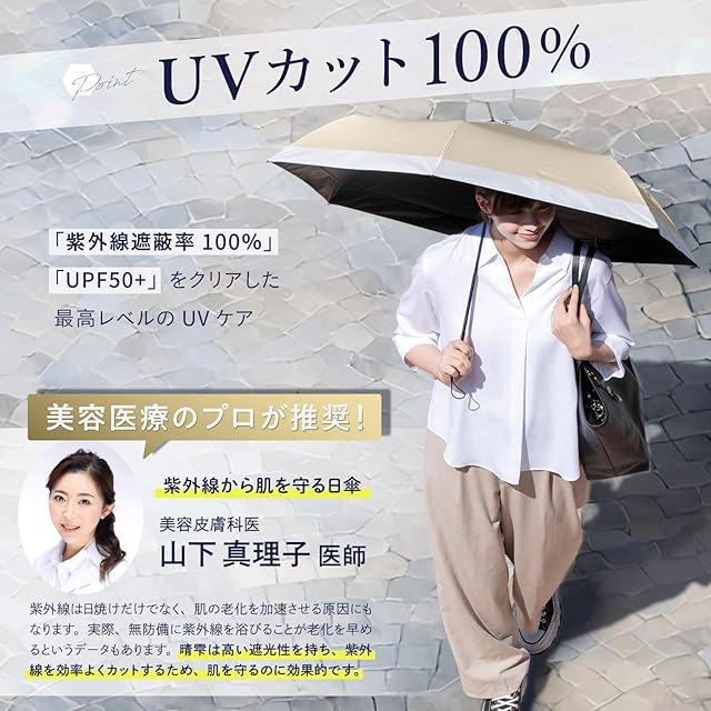 ▶▶▶ 【薄くて丈夫な上質生地 20D 400T】20D 400Tの高品質素材を採用。軽量でありながら耐久性が高く、折りたたみ傘特有のごわつきがなくスムーズに収納可能。なめらかで上品な質感が手に馴染みます。 【コンパクト】親骨55cm、直径97cm、弧長107cmのワイドサイズ。体全体をしっかり守る大きさで、大きな日陰を作れます。折りたたむと長さ23cmのスリムサイズでコンパクト。収納時は小さめバッグにもスッポリ収まります。