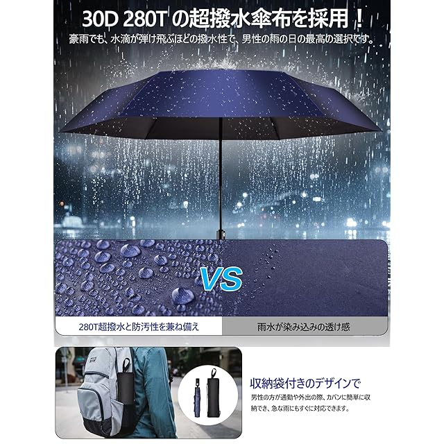 【晴雨兼用 撥水・耐風設計】:高密度撥水加工で雨水をすぐに落とし、軽く振ればすぐ乾きます。6 本のグラスファイバーと航空アルミ傘骨により、強風でも裏返っても元の形に戻る高い耐風性。晴れも雨もいつでもバックパックに入れておけば、急な天候変化にも安心です。