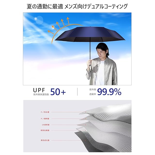 【実用派デザイン メンズギフトにおすすめ】:軽量性、安全性、高性能を兼ね備えた折りたたみ日傘。誕生日、父の日などのプレゼントにも最適! 人気の折りたたみ傘ランキング上位を狙う、男性に特化した機能性とデザイン性を備えた注目のアイテムです。