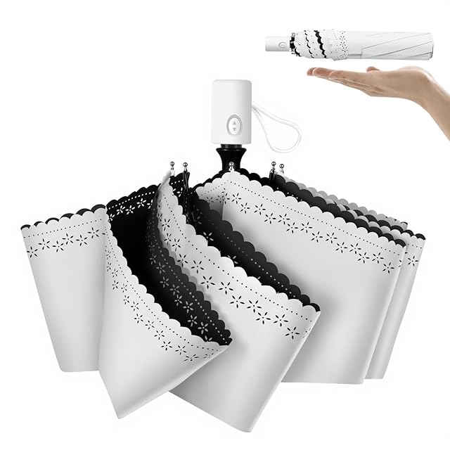 日傘 【JIS認証 UVカット 100%遮光 遮熱】 折りたたみ傘 超軽量 コンパクト 紫外線遮断 日焼け防止 晴雨兼用 携帯便利 UPF50+ 暑さ対策 折り畳み日傘 ワンタッチ自動開閉 耐風撥水 レディース メンズ 男女兼用 熱中症対策 収納ポーチ付き ギフト (ホワイト(花柄))
