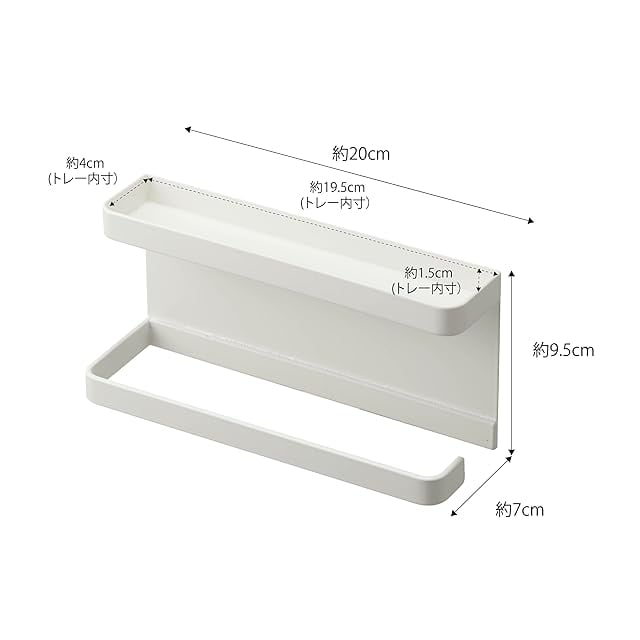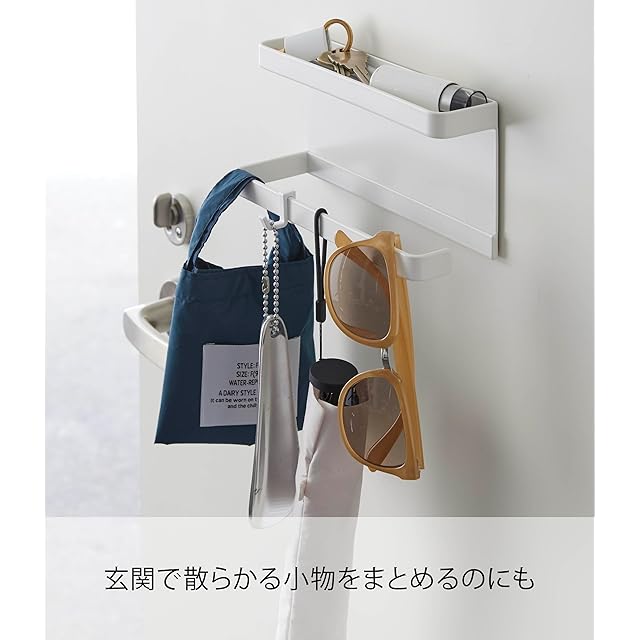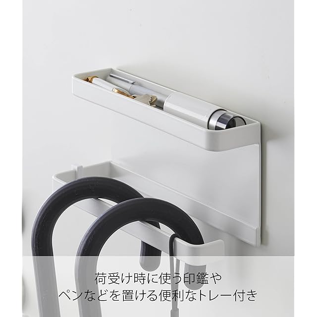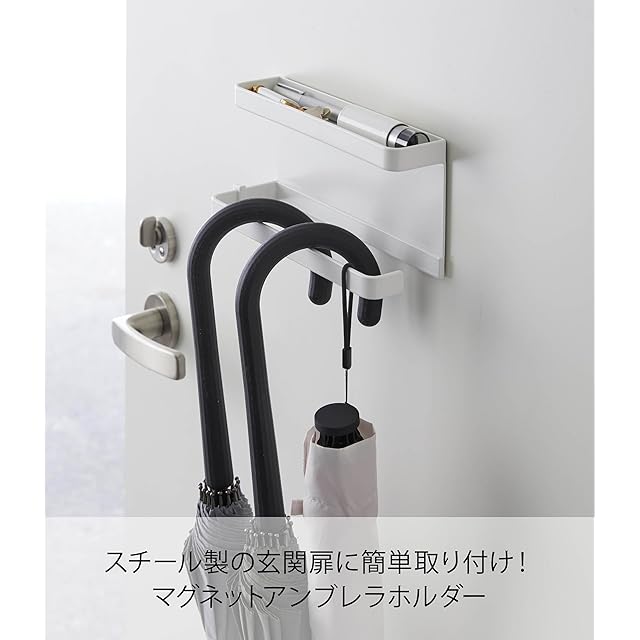 山崎実業(Yamazaki) トレー付きマグネット アンブレラホルダー ホワイト 約W20XD7XH9.5cm スマート 傘立て 玄関扉収納 フック付き 5041