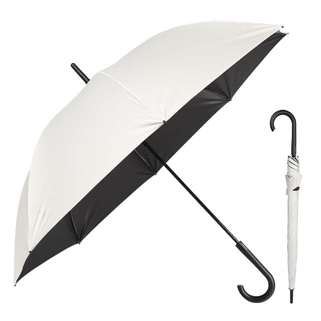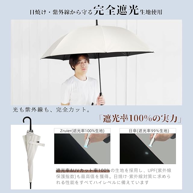【完全遮光日傘2025登場】Zruier 日傘 メンズ 完全遮光 長傘 超軽量 レディース 晴雨兼用 UVカット 100% 遮熱効果 熱中症対策 傘 ワイド 58cm スポーツ観戦 グラスファイバー 耐風 撥水 ワンタッチ ジャンプ傘 (ホワイト, 58cm)