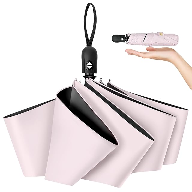 日傘 折りたたみ傘 超軽量225g UVカット率 100 遮光率100% 紫外線遮断 ワンタッチ自動開閉 晴雨兼用 折り畳み傘 携帯便利 傘 折りたたみ 軽量 高撥水 梅雨対策 台風対応 丈夫なグラスファイバー骨メンズ レディース (A-6骨-ペールピンク)
