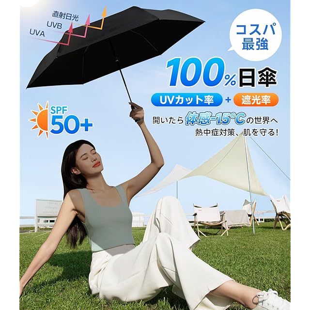 【JIS認証!究極の日傘—完全遮光遮熱・UVカット率100%】『日焼けたくない!』日差し対策。当社日傘は特殊高密度ポリエステル生地と遮熱コーティング技術により日差しの熱ストレスを軽減する設計で、第三者機関測定でUVカット率100%を確認、JIS規格に準拠した遮光性能を実現。開いた瞬間から、-15℃の冷却効果だけでなく、紫外線から肌を保護するだけではなく、厳しい暑さから身体を守る高い遮熱性を実現しています。通勤・買い物・お子様の送迎など、日中の外出時に重宝します。