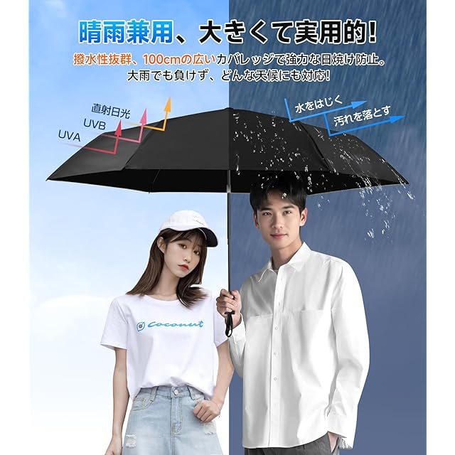 日傘『業界初!段階収納&JIS認証』UVカット100% 自動開閉・耐風撥水折りたたみ傘 遮光 遮熱 超軽量 ポケット 丈夫 100cm大傘径 晴雨兼用 折り畳み傘 熱中症対策 日焼け止め 肌を守る メンズ/レディース/子供 おしゃれ 母の日 父の日プレゼント ブラック