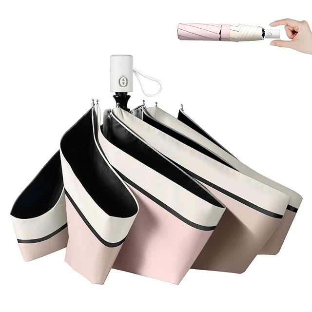 日傘 【JIS認証済 100% 完全遮光 & UVカット】 超軽量 紫外線遮断 UPF50+ 遮熱 折りたたみ傘 ワンタッチ自動開閉 暑さ対策 日焼け防止 コンパクト 折り畳み日傘 耐風撥水 晴雨兼用 携帯便利 メンズ レディース 熱中症対策 プレゼント ギフト (ライトピンク×バニラ色)