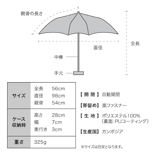 【公式限定】親骨60cm・直径105cmの特大サイズ!ベーシックなデザインで、ビジネスシーンでもプライベートでも使いやすい、自動開閉の折りたたみ日傘です。