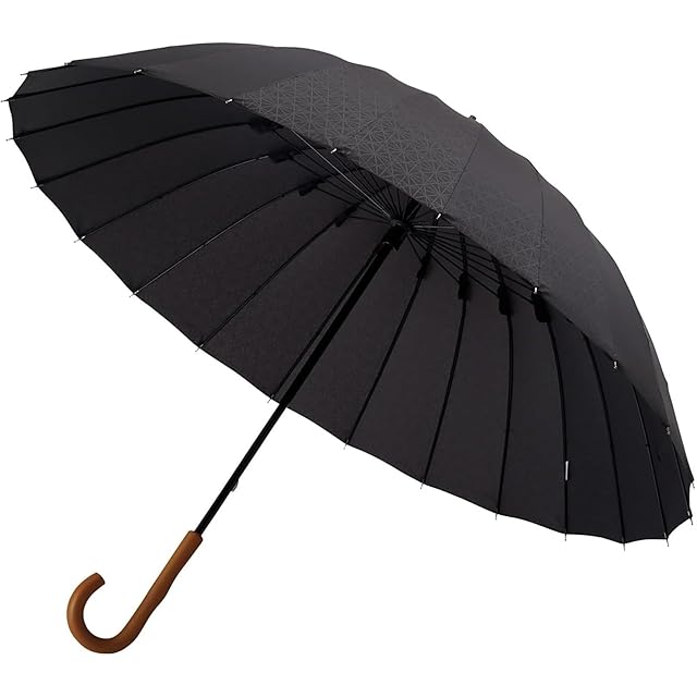 特徴・・・24本骨でありながら、素材を追求し、 一般的な長傘レベルの負担のない重さを実現。 和柄を施したおしゃれな生地、 撥水加工 長時間 耐久性を可能にしました。 水はけも良く、 通勤 通学 電車や車乗車時、にも安心。内側には、女性でも安心して使えるネイルガード付き