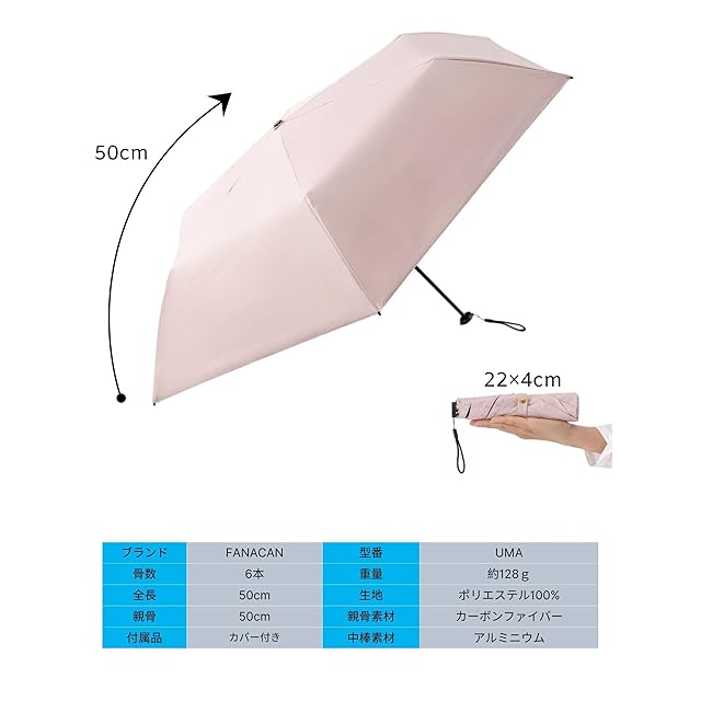 FANACAN 超軽量 カーボン 日傘 uvカット 100 遮光 折り畳み傘 完全遮光 遮熱 コンパクト 超撥水 晴雨兼用 軽い 丈夫 おりたたみ傘 メンズ レディース 男女兼用