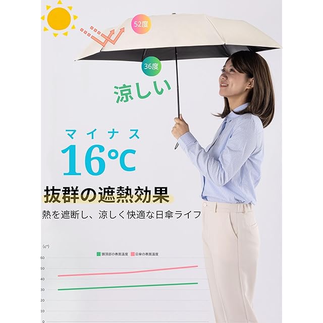 【傘の下は、まるで木陰。抜群の遮熱効果で夏も快適】 FANACANの折りたたみ日傘は、特殊遮熱素材によって強い日差しと熱をしっかりブロック。 傘を差した瞬間、まるで木陰に入ったようなひんやり感を体感できます。 熱中症や日焼け対策にも優れ、真夏の外出も安心して楽しめます。 軽量で持ち運びやすく、晴れの日も雨の日もこれ一本。 涼しさと肌の守りを同時に叶える、夏の必需品です。