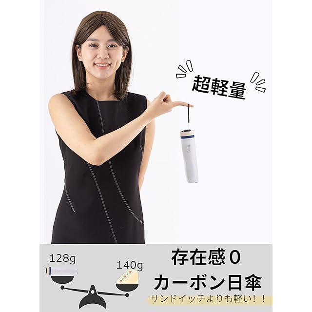 【128gの驚き。毎日持ち歩きたくなる、極上カーボン日傘】 高級傘にも使われる贅沢なカーボンファイバー素材を採用。 スマートフォンの約1/3、わずか128gの軽さで、カバンに入れても重さを感じません。 さらに、折りたたみ時はたった22cm。バッグにスッと収まるスリムさで、毎日の外出がもっと快適に。 急な雨にも、強い日差しにも、晴雨兼用でしっかり対応。 骨組みは6本のカーボン仕様に強化し、軽量なのにしっかり頑丈。風にも負けない安心感。