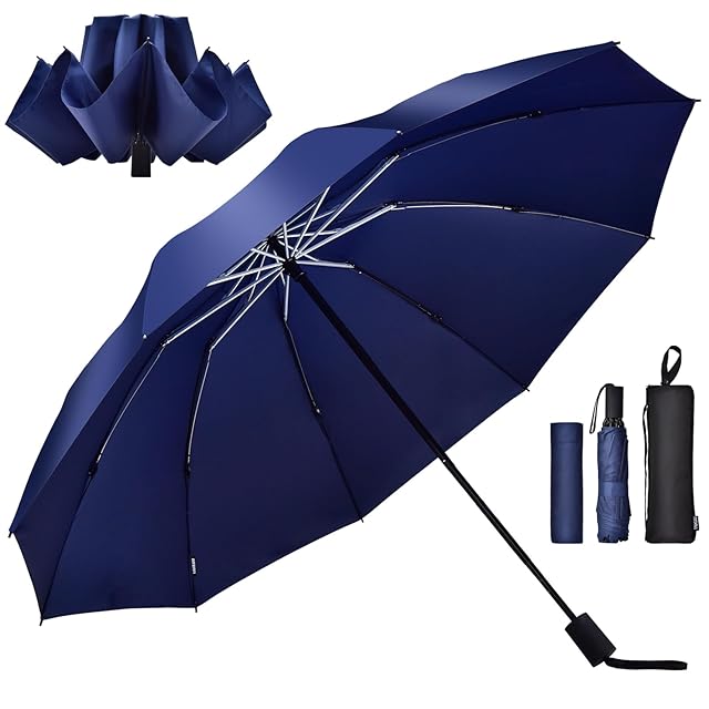 折りたたみ傘 大きいサイズ 手動 特大140CMメンズ 折り畳み傘 男性 中学生 男子手開き逆折 頑丈耐風 折畳傘強風に強い高級撥水吸水傘ケース 丈夫 周りが背中濡れない傘濡れない 車高校生用 ブルー