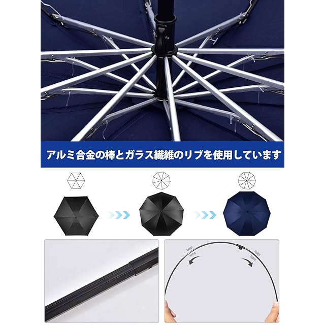 【自動開閉+98段階ロック機構】:片手操作可能な自動折りたたみ傘機能に、独自開発の逆戻り防止システムを融合。収納時に98ヶ所で固定可能なため、電車内や車中での安全な操作を実現。日傘 自動開閉技術の次世代モデル。