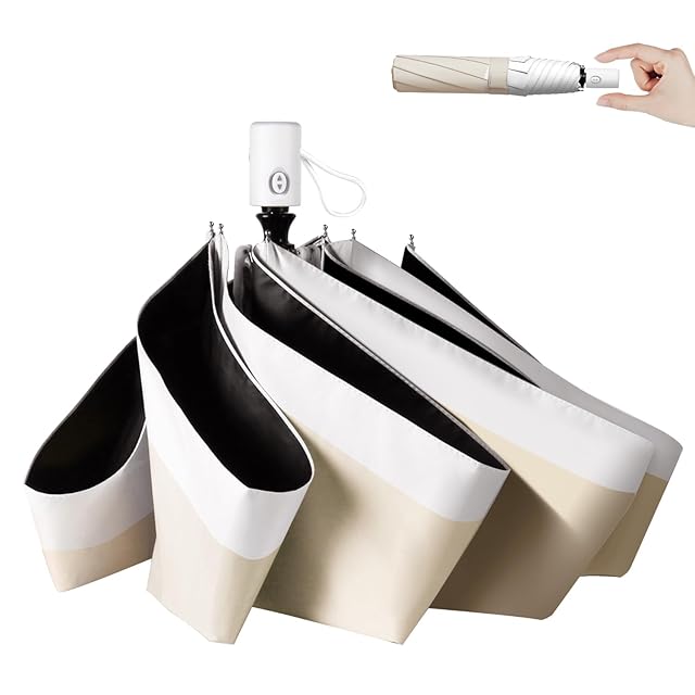 日傘 【JIS認証済 100% 完全遮光 & UVカット】 超軽量 紫外線遮断 UPF50+ 遮熱 折りたたみ傘 ワンタッチ自動開閉 暑さ対策 日焼け防止 コンパクト 折り畳み日傘 耐風撥水 晴雨兼用 携帯便利 メンズ レディース 熱中症対策 プレゼント ギフト (ベージュ×ホワイト)