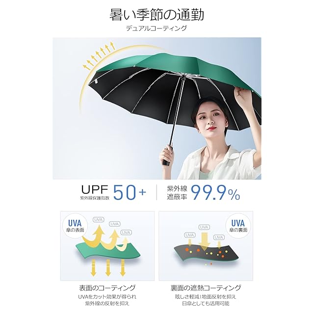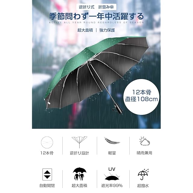 【超大サイズ・12本骨】 折りたたみ傘 ワンタッチ自動開閉 メンズ傘 大きい 逆折り式 折り畳み傘 風に強い テフロン加工 耐風撥水 丈夫耐久 折りたたみ日傘 遮光遮熱 UVカット 晴雨兼用傘 梅雨対策 台風対応 豪雨対応 メンズ レディース 母の日 父の日 ギフト (グリーン)