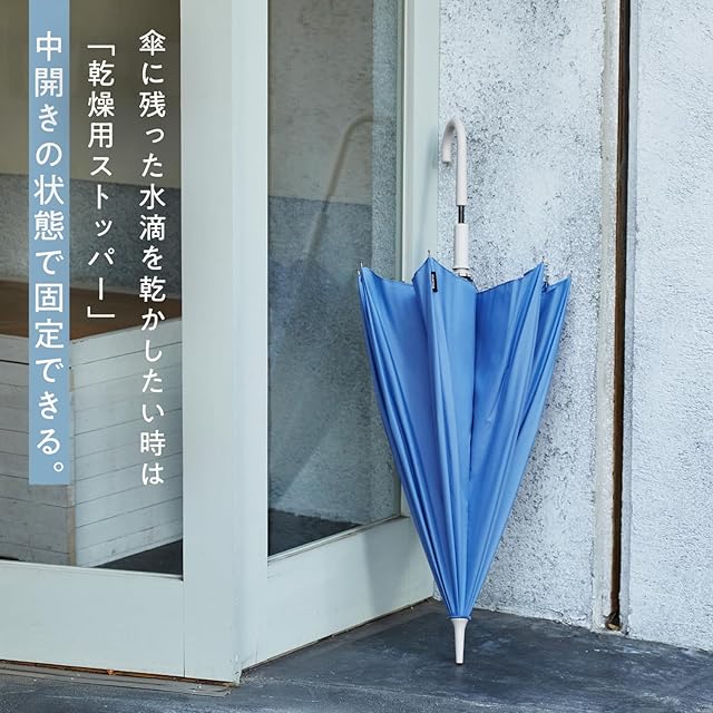 【中開きで固定】中開きの状態で固定して乾燥できるので、傘に残った水滴を乾かせます。細めで握りやすい58cm、しっかりとした握り心地の62cm。ファッションに合わせやすい優しい色合いのラインナップです。