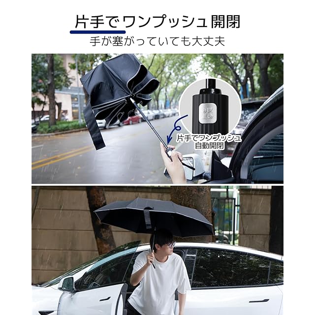 【ワンタッチ自動開閉傘】 軽く押すと自動開閉できます。車を降りたり、子供を抱いたり、荷物を持っている時、折り畳み傘は最適です。 折りたたみ式なので出張、旅行の携帯用として、車の中に常備していると大変便利です。