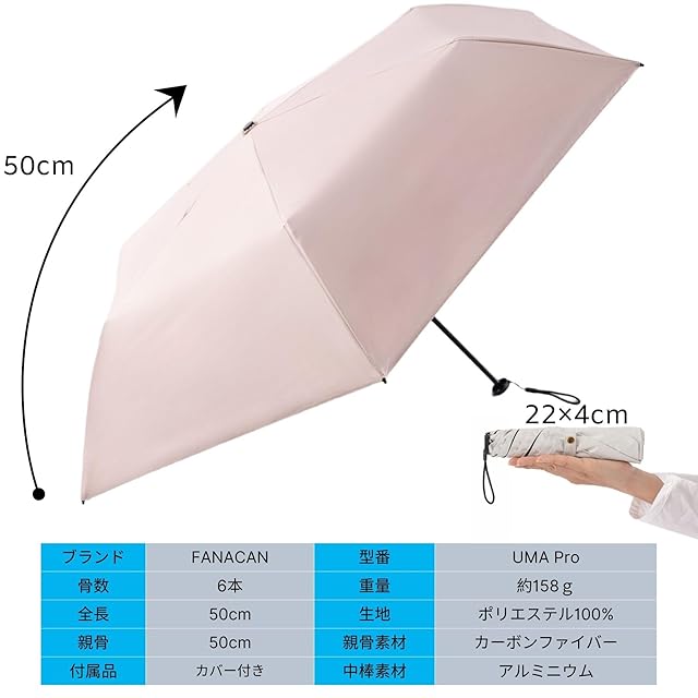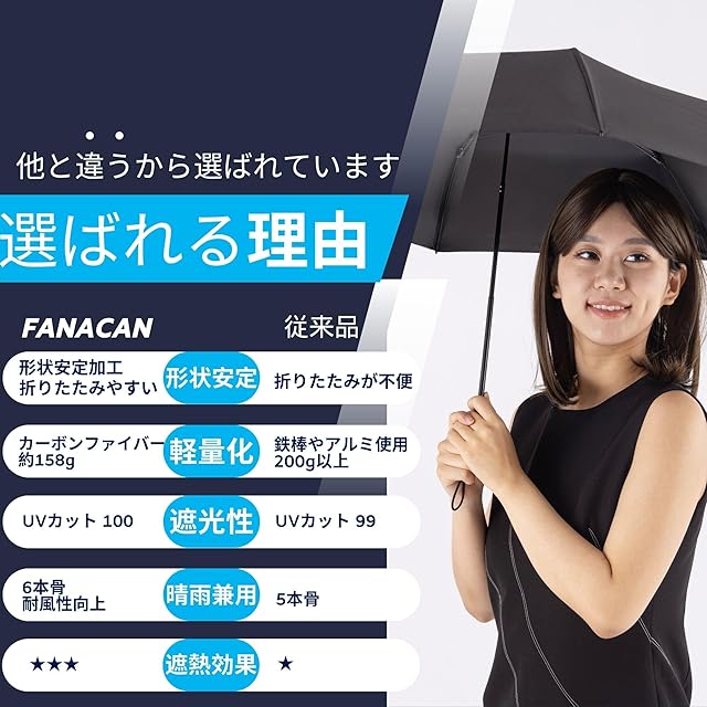 FANACAN 形状安定日傘 折りたたみやすい 超軽量 日傘 カーボン uvカット 100 遮光 折り畳み傘 完全遮光 遮熱 形状記憶 コンパクト 軽い 晴雨兼用 丈夫 メンズ レディース 兼用