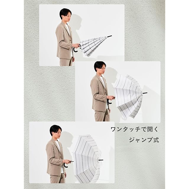 assa 日傘 メンズ 長傘 大きい 晴雨兼用 男性用 傘 遮熱効果 熱中症対策 遮光 100% UVカット グラスファイバー ワンタッチ ジャンプ傘 FJ (FJ280/アイボリー)