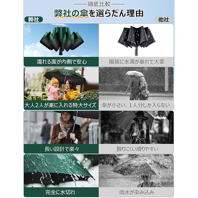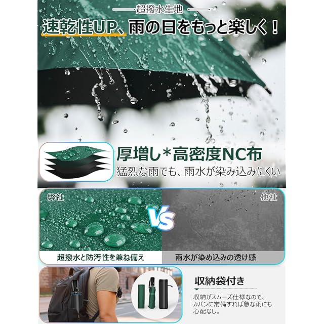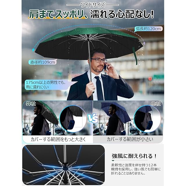 12本超強靭な骨組みで「強化型傘」。☂【12本骨強化型&強風耐久性】様々な意見をまとめて、新作の晴雨兼用傘がようやく登場!男性の方が求める機能を全て取り入れた究極の強化型傘です。柔軟性と強度を併せ持つ12本親骨を採用し、普通の8傘本骨より、耐風性と耐久性ともに向上させた、防食加工が施された傘のフレームは超強靭で錆びにくい上に、強風にあおられても豪雨に打たれても折れたり曲がったりしにくいです。3段折り構造により、強風で裏返ってもちゃんと元に戻ります。安易に折れたり曲がったりする心配ありません。梅雨はもちろん、豪雨、強風にも安心できます。(※通常の傘より少し重いですが、機能を重んじて傘の強度と大きさを求めて作られています。重さに気になる方は何卒ご理解のほどよろしくお願い致します。)