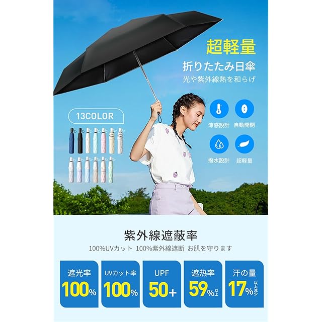 日傘 【JIS認証 UVカット 100%遮光 遮熱】 折りたたみ傘 超軽量 コンパクト 紫外線遮断 日焼け防止 晴雨兼用 携帯便利 UPF50+ 暑さ対策 折り畳み日傘 ワンタッチ自動開閉 耐風撥水 レディース メンズ 男女兼用 熱中症対策 収納ポーチ付き ギフト (ブラック)