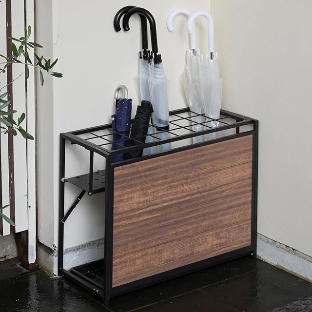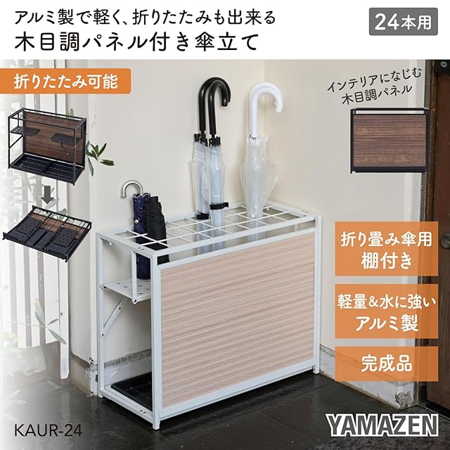 山善(YAMAZEN) 傘立て 折り畳み傘対応 軽量 折りたたみ可能【完成品】 傘たて 24本用 屋外 幅57.5×奥行26.5×高さ48.5cm 水受け取り外し可能 玄関収納 ラック ブラウン KAUR-24(BR)
