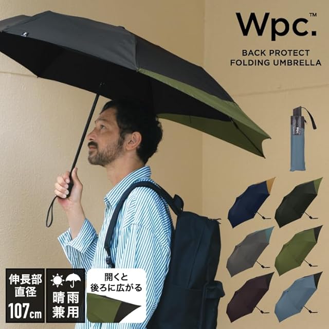 Wpc. [リュックが濡れない] 折りたたみ傘 BACK PROTECT FOLDING グレー×ブルーグリーン 雨傘 晴雨兼用 55cm 大きい メンズ 男性 バックパック 後ろが長い 通勤 通学 おしゃれ 傘袋ポケット UX004-932-002