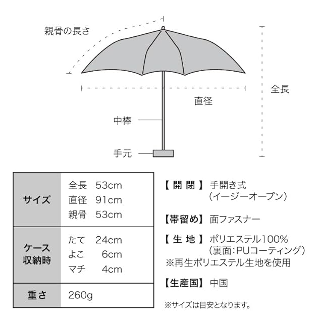 【長く大切に使い続けるための耐久性の高い骨構造】 風速15m/s耐風検査をクリアした耐久性の高い骨構造を採用し、 男性でも使用出来るサイズ感も確保しています。