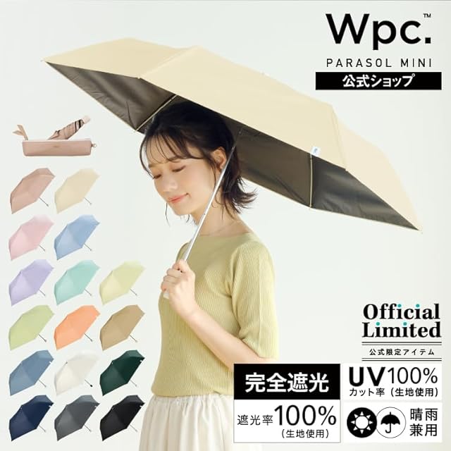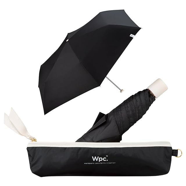 Wpc. 日傘 オールウェザーパラソル ブラック 《遮光率100%・UVカット率100%・UPF50+・晴雨兼用》 親骨50cm レディース スリム コンパクト シンプル 無地 パステル 女性 メンズ 通勤 通学 RAH-2305-FP