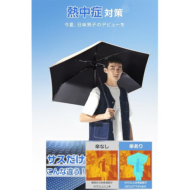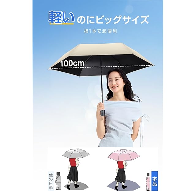 【100%遮光・日焼け止め】この超軽量日傘は、高密度生地に多層の黒ノリコーティングを施しており、UPF50+、UVカット率99.9%、100%遮光を実現します。効果的に日焼けを防ぎ、肌を日差しや有害な紫外線からしっかりと守ります。日焼け防止や熱中症対策にも役立つため、折りたたみ日傘として常備しておけば、猛暑の日でも安心して外出できます。