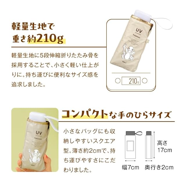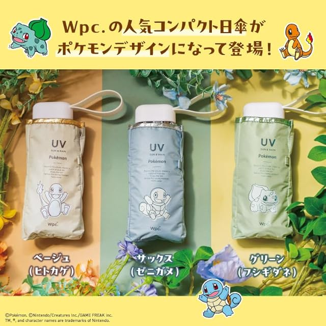 Enjoy adveture with Pokémon雨の日も晴れの日も お気に入りのパートナーと楽しく 冒険へでかけよう! Wpc.の人気コンパクト日傘がフシギダネ・ヒトカゲ・ゼニガメのデザインとして登場! 冒険のパートナーを選ぶようなワクワクを感じられる日傘です。透明感のある涼しげなデザインと色合いで、どんなファッションにも合わせやすいアイテムです。