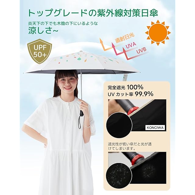 Konciwa【新登場】日傘 超軽量 ワンタッチ 自動開閉 国内機関遮光率100%認証 遮光 遮熱 UVカット 折りたたみ傘 コンパクト 折り畳み日傘 紫外線遮断 耐風撥水 晴雨兼用 携帯便利 メンズ レディース 母の日 父の日