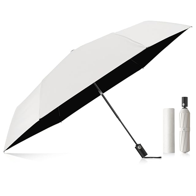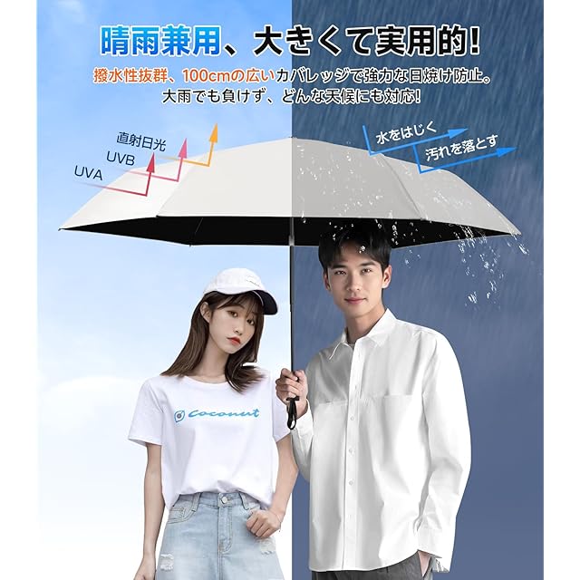日傘『業界初!段階収納&JIS認証』UVカット100% 自動開閉・耐風撥水折りたたみ傘 遮光 遮熱 超軽量 ポケット 丈夫 100cm大傘径 晴雨兼用 折り畳み傘 熱中症対策 日焼け止め 肌を守る メンズ/レディース/子供 おしゃれ 母の日 父の日プレゼント ホワイト