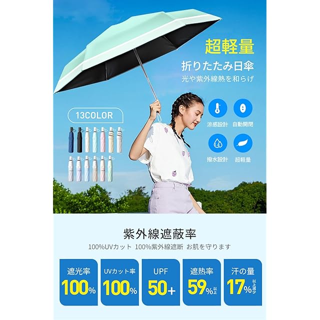 日傘 【JIS認証 UVカット 100%遮光 遮熱】 折りたたみ傘 超軽量 コンパクト 紫外線遮断 日焼け防止 晴雨兼用 携帯便利 UPF50+ 暑さ対策 折り畳み日傘 ワンタッチ自動開閉 耐風撥水 レディース メンズ 男女兼用 熱中症対策 収納ポーチ付き ギフト (ライトグリーン×ホワイト)