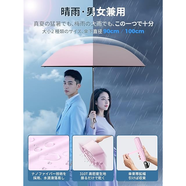 【大小2 種類のサイズ、傘下直径 90cm/100cm・9 色から選べます】90cm の小サイズは軽量で持ち運びが簡単で、いつでもどこでも風や雨を遮ってくれます。日常の通勤や買い物の際に、最適なお供となります。100cm の大サイズは、適切な遮蔽面積で、全方位の保護を提供します。突然の激しい雨でも、心配することはありません 。人それぞれユニークな個性とスタイルを持っています。UPEB が丹念にデザインした 9 色は、服との相性が良いだけでなく、それぞれ鮮明で特徴的です。傘を差して歩くすべての瞬間に、あなたが独一無二の風景になれます 。