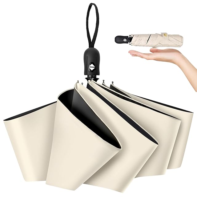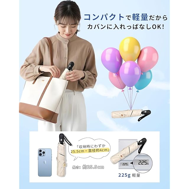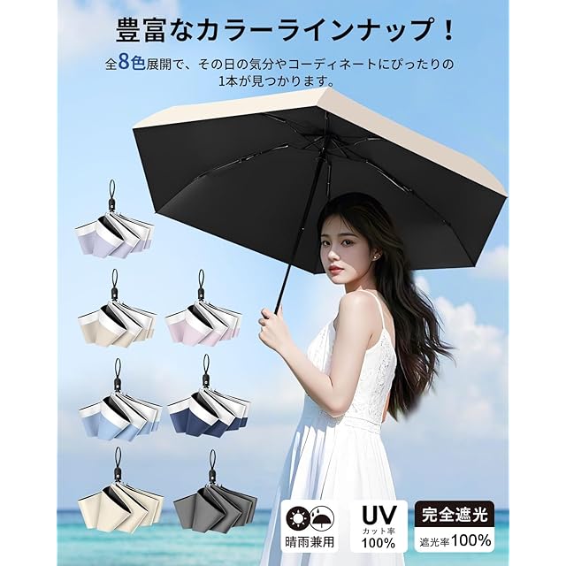 日傘 折りたたみ傘 超軽量225g UVカット率 100 遮光率100% 紫外線遮断 ワンタッチ自動開閉 晴雨兼用 折り畳み傘 携帯便利 傘 折りたたみ 軽量 高撥水 梅雨対策 台風対応 丈夫なグラスファイバー骨メンズ レディース (ベージュ)