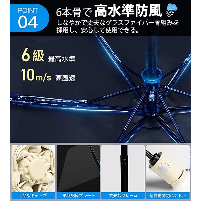 【最高ランク5級の撥水力】 撥水性に優れた高性能ポンジー生地を採用し、水滴が瞬時に転がり落ちます。軽く振るだけで水が切れるので、傘をたたんだ後も手やバッグが濡れにくく、雨の日も快適に使えます。