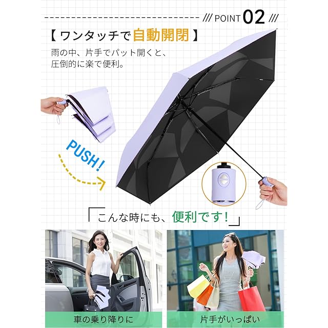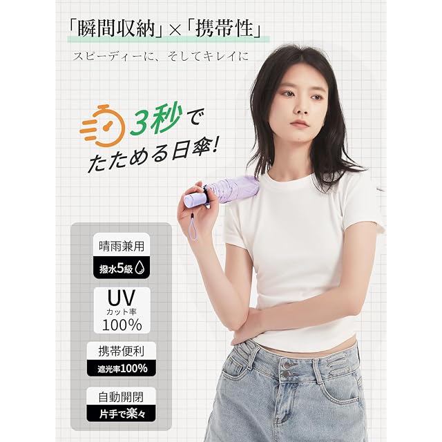 【3秒ととのえる!・形状記憶加工】折りたたみ傘 日傘 UVカット 100%完全遮光 遮熱 高撥水 超軽量 コンパクト ワンタッチ 自動開閉 折り畳み日傘 晴雨兼用 紫外線遮断 耐風撥水 日焼け止め 日除け おりたたみ 撥水速乾 携帯便利 レディース 子供 プレゼント 母の日「意匠出願済」 (うすむらさき)