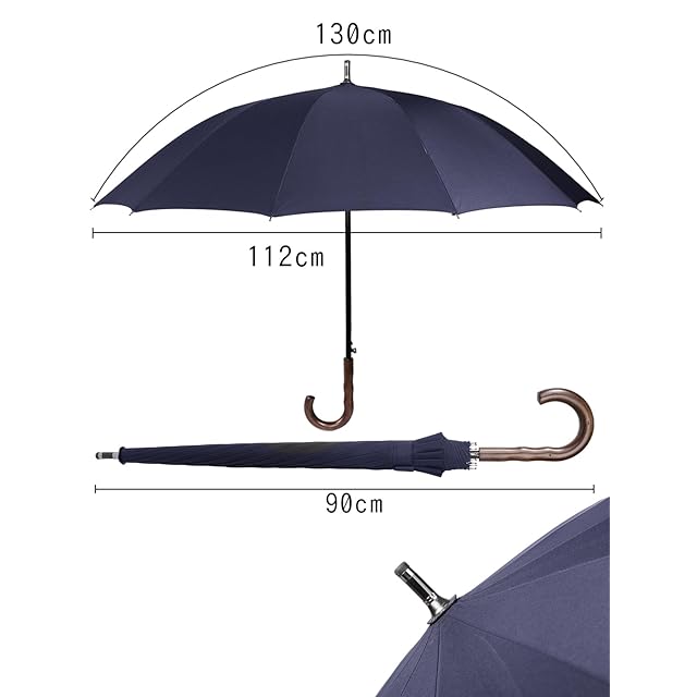 【ビッグサイズメンズ長傘】傘を開くと直径約112cm、弧長約130cmと大型化され、大人2人余裕に入れる雨傘です。雨を防げる範囲が大きく、リュックを背負ってもしっかりとカバーされ、体の大きな男性が窮屈さがなく快適です。日常生活&ビジネス&カジュアル&キャンプ&旅行などどんな舞台でも大活躍な丈夫傘です。