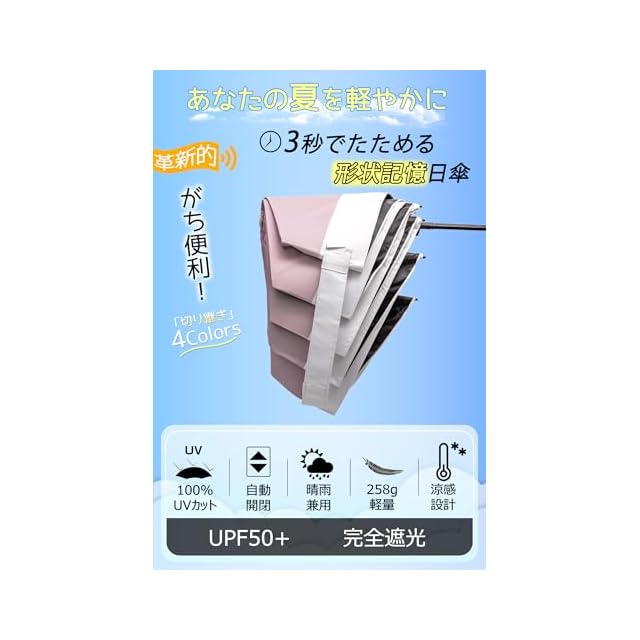 【3秒でキレイに畳める】形状記憶 日傘 折りたたみ 軽量 uvカット 100遮光 折り畳み傘 自動開閉 遮熱 コンパクト 晴雨兼用 日焼け防止 紫外線遮断 耐風 携帯便利 メンズ レディース (ピンク×ホワイト)