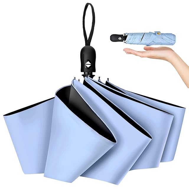日傘 折りたたみ傘 超軽量225g UVカット率 100 遮光率100% 紫外線遮断 ワンタッチ自動開閉 晴雨兼用 折り畳み傘 携帯便利 傘 折りたたみ 軽量 高撥水 梅雨対策 台風対応 丈夫なグラスファイバー骨メンズ レディース (A-6骨-ライトブルー)
