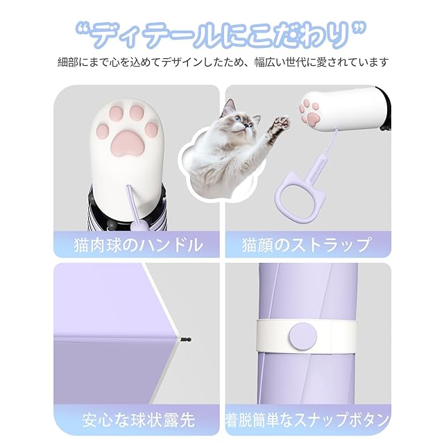 【可愛い猫の肉球 日傘】日傘の持ち手には、可愛らしい猫爪デザインが施されており、見た目もユニークで楽しい気分に。実用性と可愛さを兼ね備えた男女兼用のおしゃれな折りたたみ傘です。母の日、誕生日、敬老の日、お祝い、入学、卒業、バレンタインデーなど、上質な贈り物としてご利用いただけます