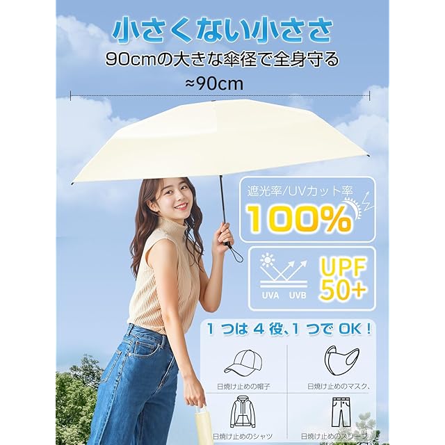 【100% 紫外線防止 & 100% 遮光・遮熱日傘】 特殊なコーティング技術と素材を使用し、100% の紫外線遮断性能を実現しています。有害な紫外線を完全に遮り、肌を日焼けや老化から守り、健康な肌を維持するために役立ちます。100% の遮光・遮熱機能も備えています。日差しの強い日にも傘を開けるだけで涼しさを感じられ、太陽の光と熱を効果的に遮断して、快適な空間を作り出します。