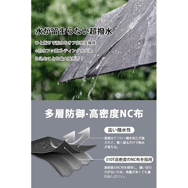 【強風や豪雨に負けない耐久性&高強度な傘骨】頑丈な8本の親骨を採用し、耐風性と耐久性を大幅に向上させた折りたたみ傘です。軽量ながらも頑丈なアルミ素材と壊れにくいグラスファイバーを組み合わせた設計により、普通の傘と比べて横強度が25%アップ!豪雨や強風にも安心してお使いいただけます。さらに、万が一風にあおられて裏返ってしまった場合でも、開閉ボタンを押すだけで簡単に元通りになるので、壊れにくく長く愛用できます。耐久性と安心感を兼ね備えたこの一本、雨の日の強い味方になること間違いなし!