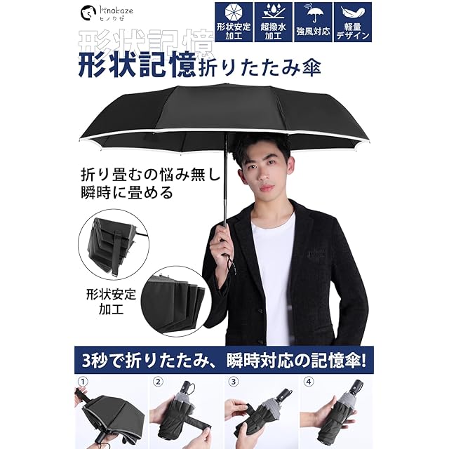 HINOKAZE 折りたたみ傘 ワンタッチ 自動開閉 メンズ【形状記憶・3秒でたためる傘】265g超軽量 8本骨自動開閉 折り畳み傘 おりたたみ メンズ レディース 折りたたみ傘 ワンタッ 撥水速乾 耐強風 男女兼用 携帯しやすい